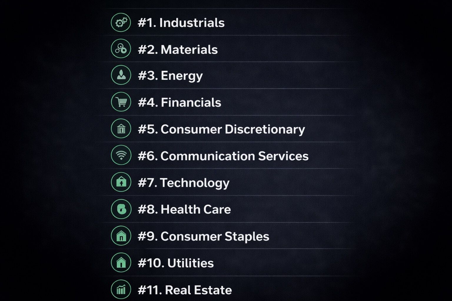 Financials and Consumer Discretionary remain in the upper-middle tier without advancing into the top positions.